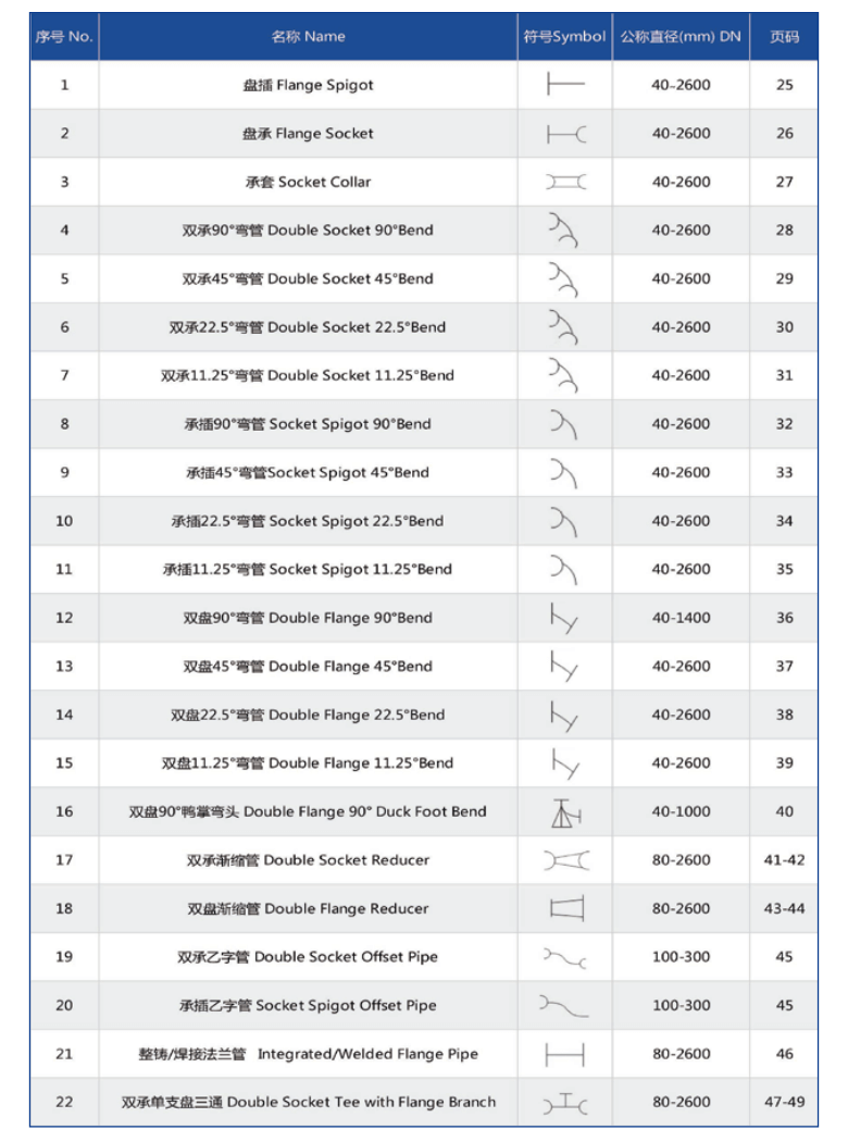 各種規(guī)格管件尺寸及重量: