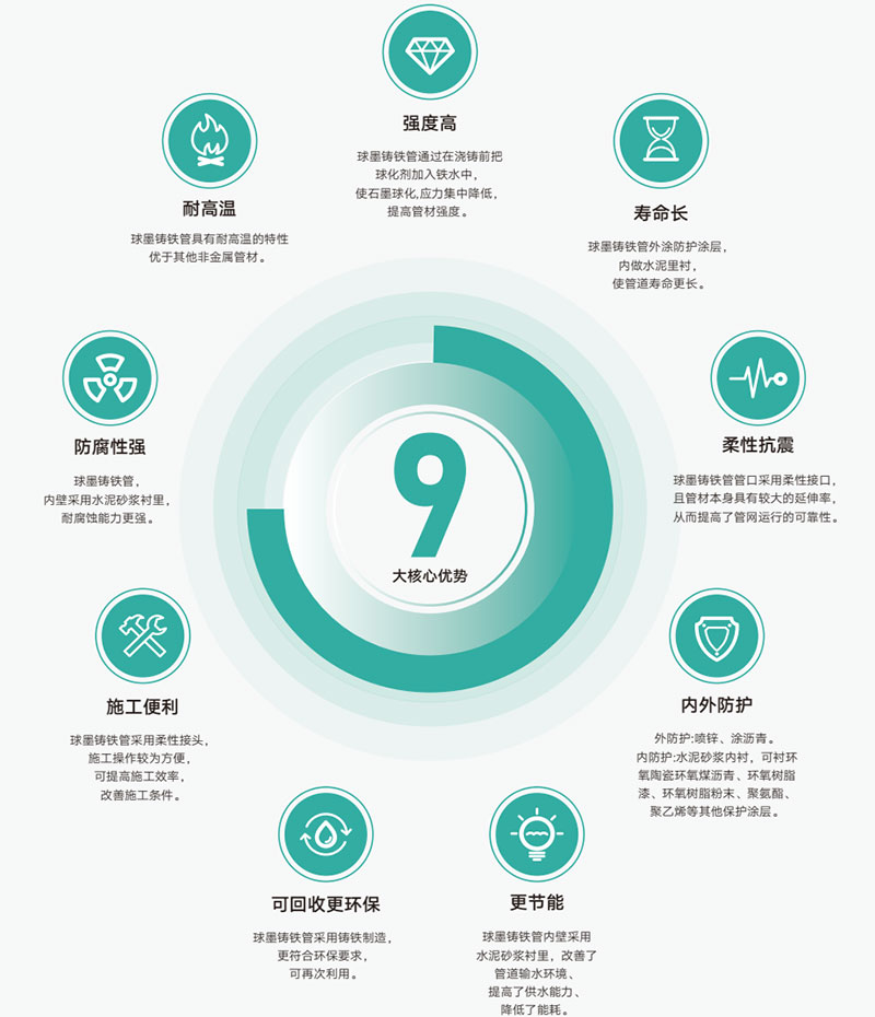 球墨鑄鐵管優(yōu)勢: